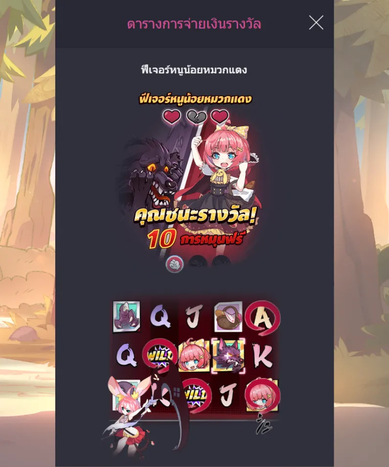 - เมื่อการหมุนในแต่ละรอบจบลง หากมีสัญลักษณ์พลังของหนูน้อยหมวกแดงหรือหมาป่าปรากฏบนเพลา พลังเหล่านั้นจะถูกนำไปนับรวมในแถบสะสมทันที ทำให้ทุกสปินไม่ได้มีแค่ลุ้นเงินรางวัล แต่ยังลุ้นสถานการณ์ของเกมในภาพรวมด้วย