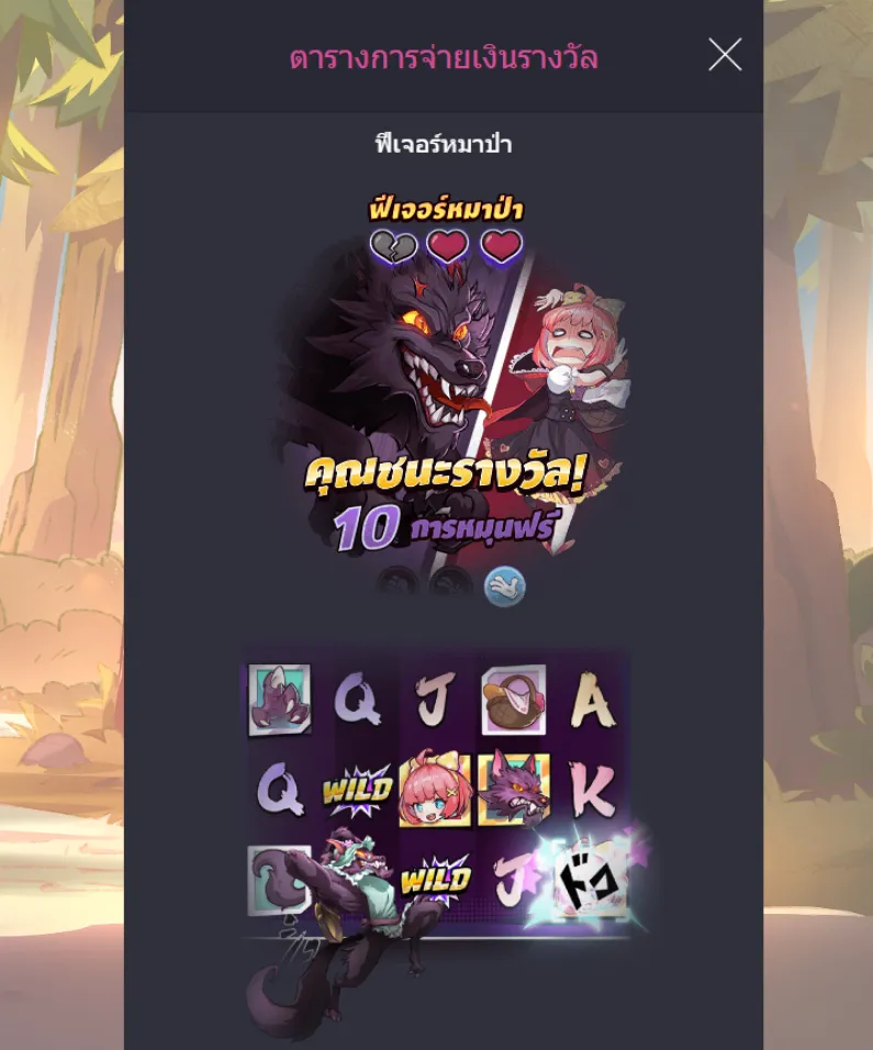 เป็นกุญแจสู่โหมดพิเศษ เมื่อปรากฏตามเงื่อนไข จะพาเข้าสู่ช่วงโบนัสที่บรรยากาศเปลี่ยนทันที ความตึงเครียดเพิ่มขึ้น พร้อมโอกาสรับรางวัลที่มากกว่าเกมหลักหลายเท่า เป็นช่วงที่สายลุ้นแตกต่างรอคอย - ฟีเจอร์โบนัสตามฝั่ง Hood และ Wolf