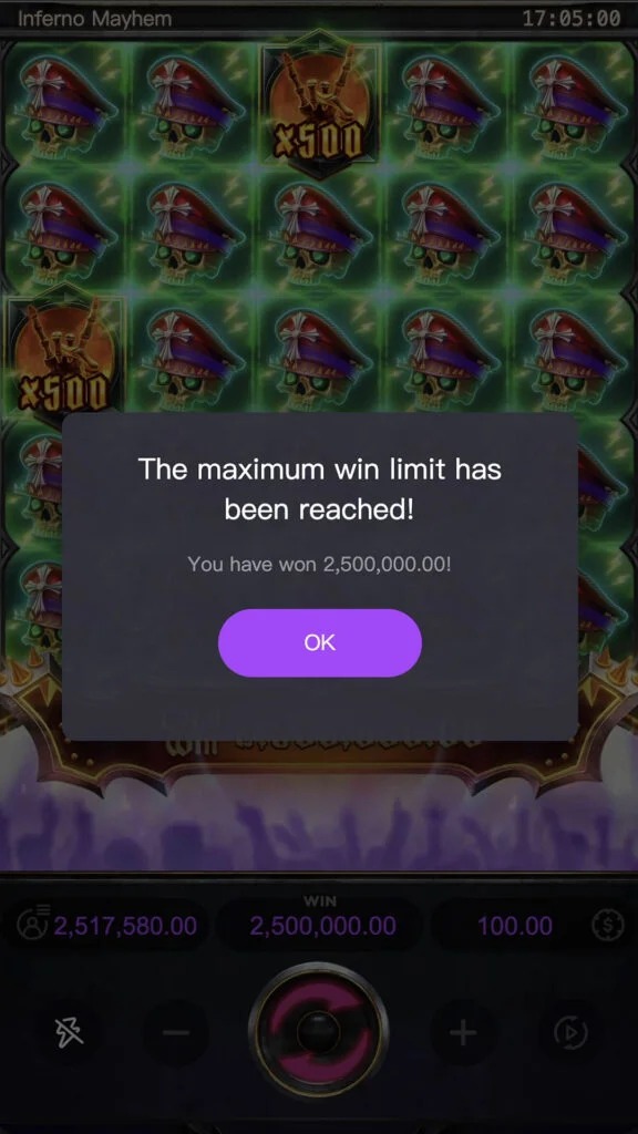 • Inferno Mayhem เป็นเกมสล็อตวิดีโอรูปแบบผสมสัญลักษณ์ (Cluster Pays) บนกระดานขนาด 5×5 ช่อง ที่มาพร้อมลูกเล่นเด่นอย่างฟีเจอร์รีสปินและสัญลักษณ์ไวด์พร้อมตัวคูณสูงสุดถึง x500 เพิ่มโอกาสลุ้นรางวัลใหญ่ในทุกการหมุน ตัวเกมถูกออกแบบให้เล่นง่าย แต่ยังคงความตื่นเต้นไว้ครบสำหรับสายสล็อตที่ชอบจังหวะลุ้นต่อเนื่อง